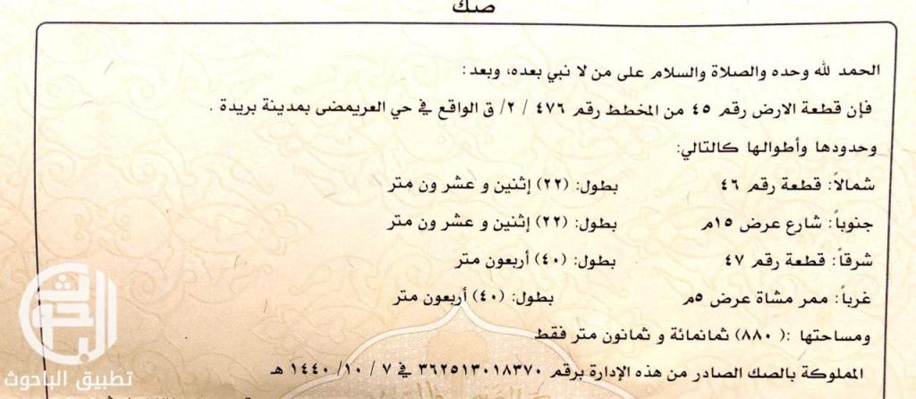 ارض للبيع - حي العريمضي - بمساحة 880 م -الارض مسورة وبعداد كهرب وعداد ماء - فيها رخصة بناء تسوية وملاحق - الحد 450 ريال للمتر